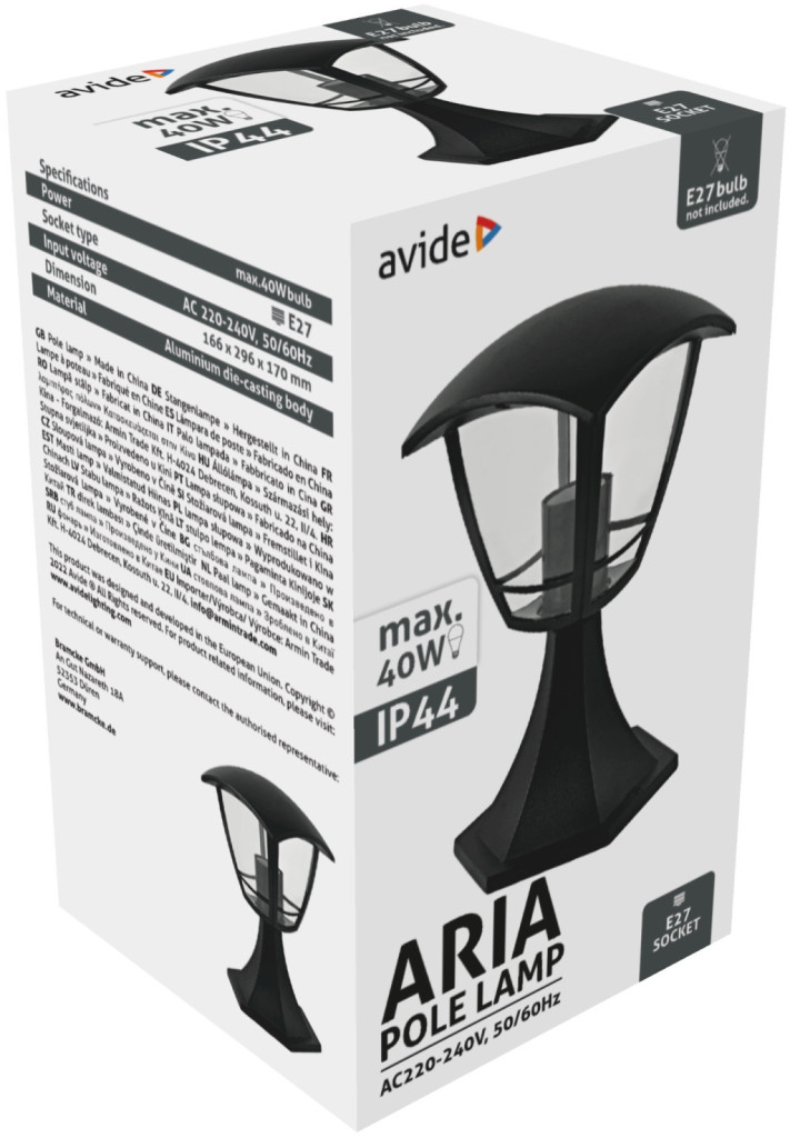 Avide Kültéri Álló Lámpa Aria 290mm 1xE27 Fekete IP44