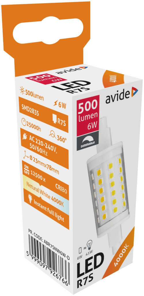 Avide LED 6W R7S 23x78mm NW 4000K Fényerőszabályzós