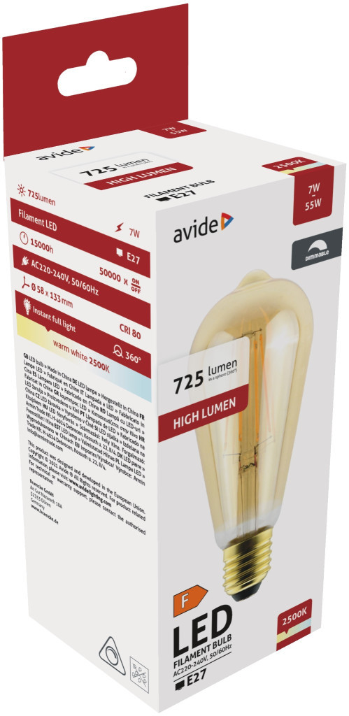 Avide LED Filament ST57 7W Fényerőszabályzós Borostyán E27 WW 2500K