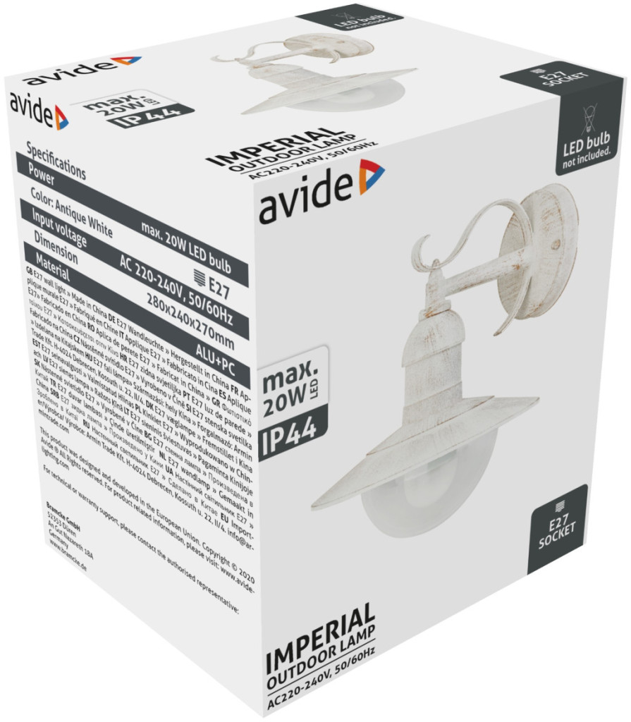Avide kültéri fali lámpa Imperial 1xE27 IP44 antik fehér