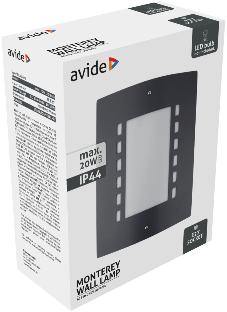 Avide kültéri fali lámpa Monterey 1xE27 IP44 Antracit
