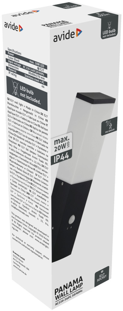 Avide kültéri fali lámpa Panama 1xE27 PIR IP44 Fekete