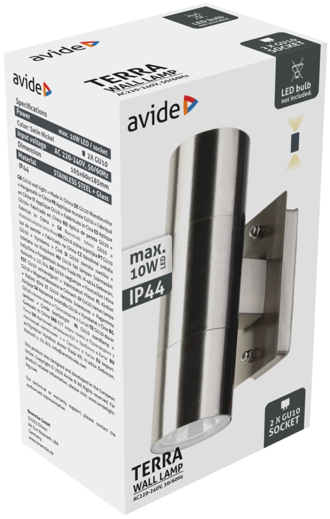 Avide kültéri fali lámpa Terra 2xGU10 IP44 Szatén Nikkel