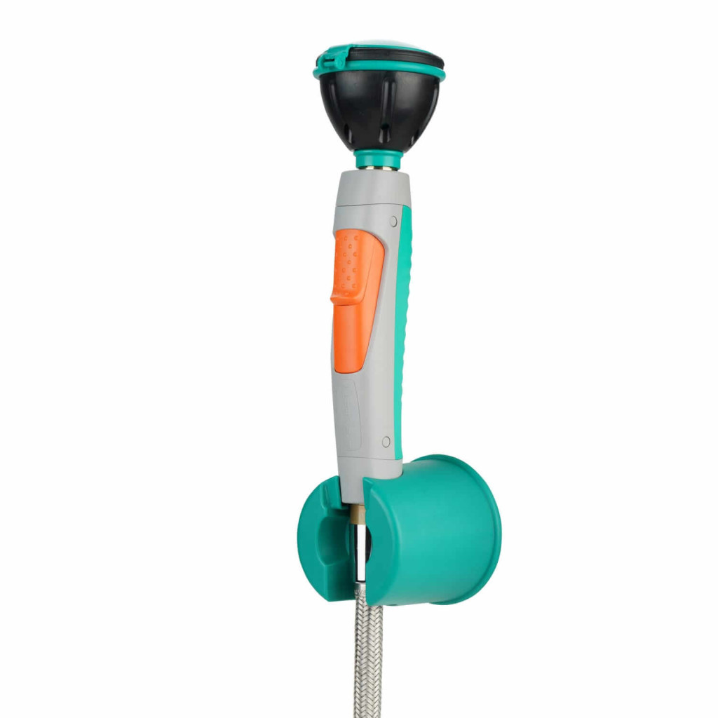 Két zuhany egyben ? ez a zuhany egyedülálló kialakításának köszönhető: a kézi szemzuhanyok a tartóban rögzített szemzuhanyként működtethetők, vagy kivehetők a tartóból a földön fekvő sérültek kézi szemzuhanyként való ápolására. Nagy teljesítményű szórófej a visszafogott, egyenletes és lágy vízsugárért, kifejezetten a vegyszerek szemből történő kiöblítésére optimalizálva. Beépített automatikus áramlásszabályozó a megfelelő, víznyomástól független sugármagasság eléréséért. Beépített visszacsapó szelep az ivóvízhálózat védelméért. Védőgumi a zuhanyfej körül, hogy megvédje az elsősegélyre szorulót az ütés okozta sérülésektől. A porvédő kupak víznyomás hatására kinyílik, amikor a szemzuhany működésbe lép. Nagy lyukak akadályozzák meg a zuhanyfejben az állóvíz felgyülemlését és ezzel a vízkő-képződést. Vízbevezetés: ??-es hüvelyes. Tömlő hossz: 1500 mm. Áramlási sebesség: 7 l/perc szórófejenként.