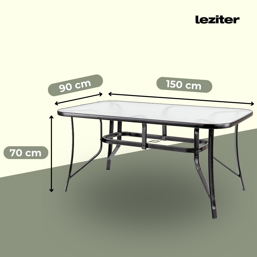 Bemutatjuk a Canillo üveg kerti asztalt, egy praktikus és stílusos bútordarabot, amely illeszkedik bármilyen kertbe vagy teraszba. Téglalap alakú asztallapja 150x90 cm-es, melyhez 70 cm-es asztalmagasság tartozik. Mérete tökéletessé teszi beltéri étkezésekhez és szabadtéri összejövetelekhez egyaránt. A strapabíró, porfestett felületű, 42x14 mm-es fekete acél váz (kereten kialakított rögzítő furatokkal) és a könnyen tisztítható üveglap hosszú élettartamú bútordarabbá teszi ezt az asztalt. A Canillo ideális választás lakossági és kereskedelmi használatra egyaránt ajánlott.