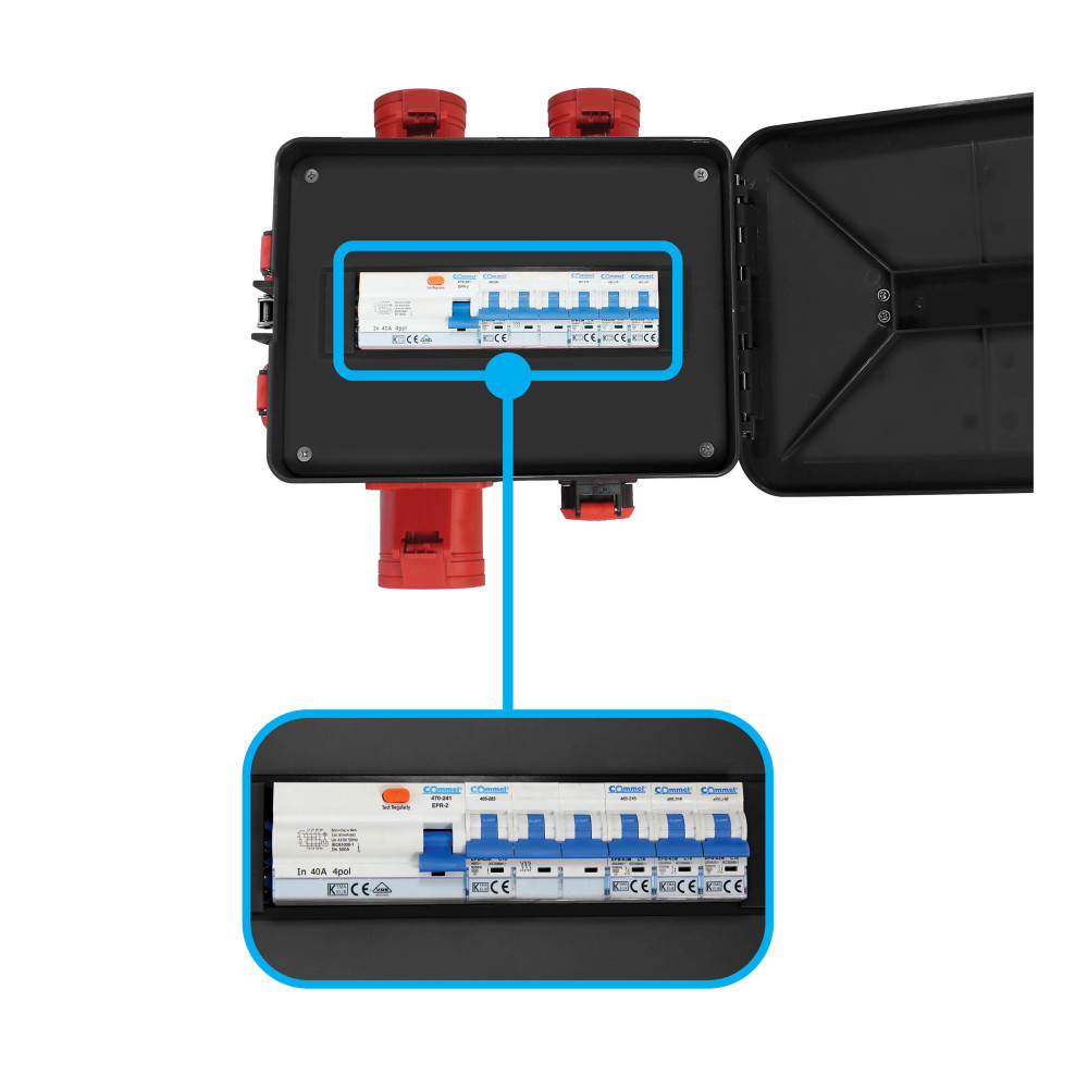 5x 230 V - / 16 A, 3x 400 V 5p 16 A,