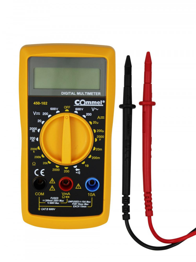 Digitális multiméter Commel, LCD kijelzővel, sárga