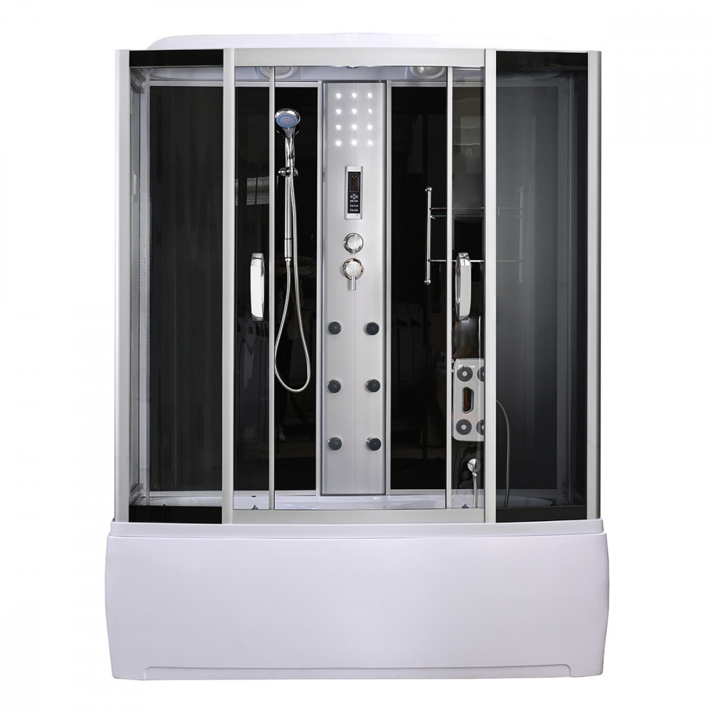 A kabint 5 mm vastag edzett biztonsági üveg veszi körül, amely sötétszürke fix üveg- és ajtópanelekkel, illetve fekete üvegfalakkal fokozza az esztétikai megjelenést. A matt króm vezetősínek és profilok tovább emelik a termék eleganciáját, míg a matt króm funkciópanel a vezérlési lehetőségek középpontjában áll. A kabin 6 hidromasszázs fúvókával rendelkezik, amely garantálja az egész testet átölelő masszázsélményt, miközben a beépített rádió, ventilátor, LED háttérvilágítás és felső világítás tovább fokozza a relaxáció élményét.