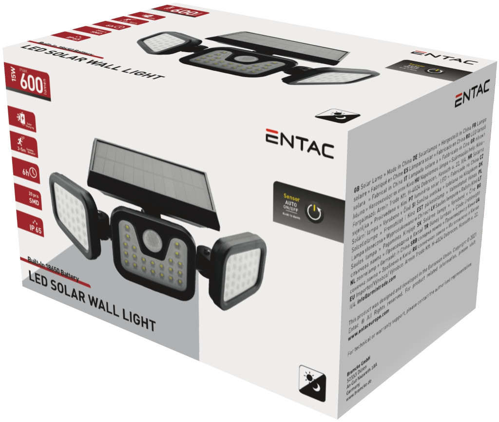 Entac Napelemes Műanyag Fali lámpa 15W SMD 3 fej mozgásérzékelővel