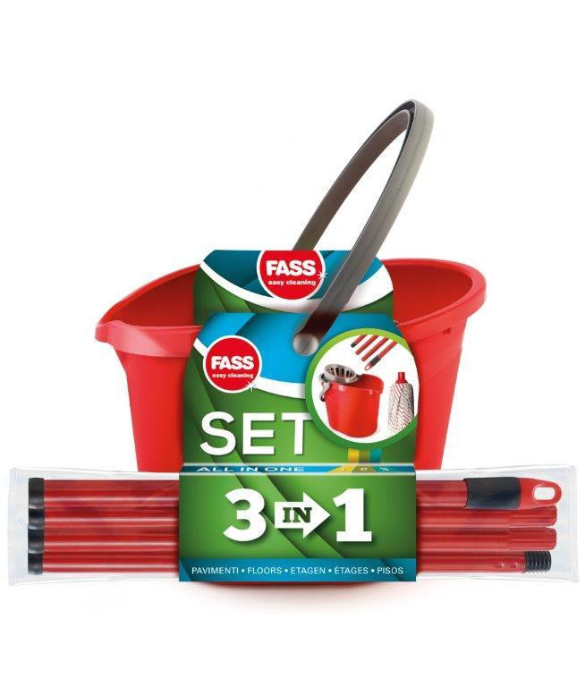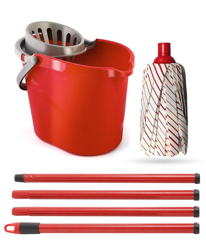 Fass felmosó szett ovális vödörrel, szintetkus moppal, nyéllel, csavarókosárral piros