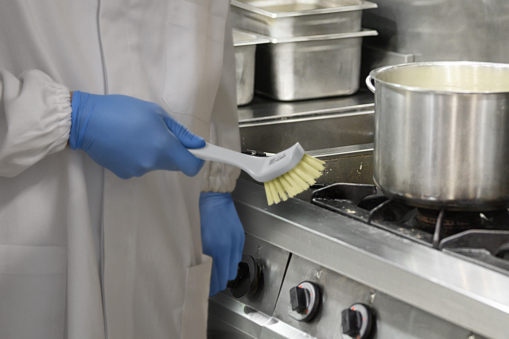 Igeax élelmiszeripari kefe forró felületek (200°C -ig) tisztításához, szögletes, fehér 0,4mm közepes sörtével