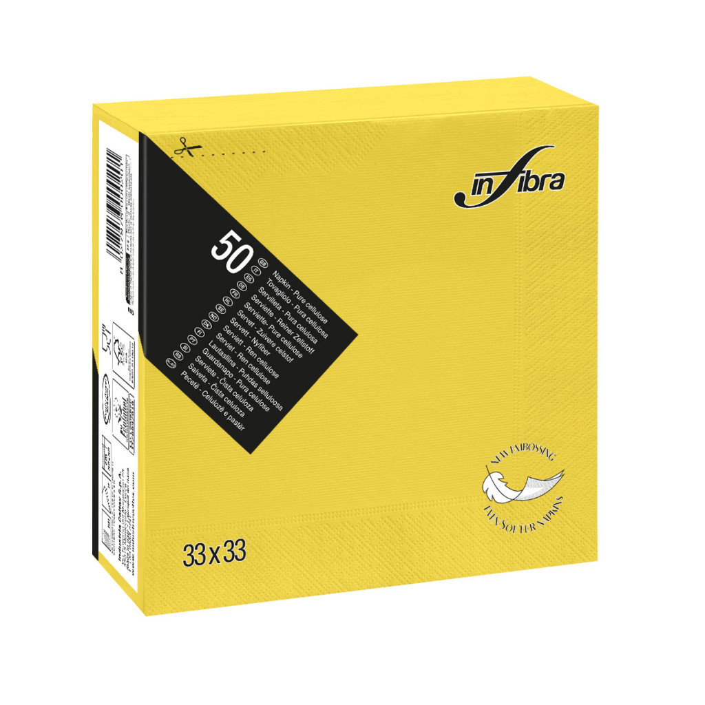 A Infibra 33×33 cm-es színes szalvéták praktikus és dekoratív megoldást kínálnak mindennapi étkezésekhez és alkalmi rendezvényekhez. Puha, erős cellulózból készülnek, jól szívják a nedvességet, miközben élénk színeikkel feldobják az asztalt. Ideálisak otthoni használatra, vendéglátásba vagy ünnepi alkalmakra.