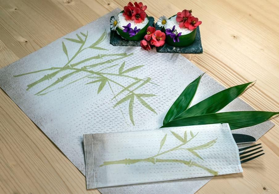 Infibra evőeszköztartó Asian mintás 2 rétegű 38x38 fehér szalvétával 125 darab/csomag