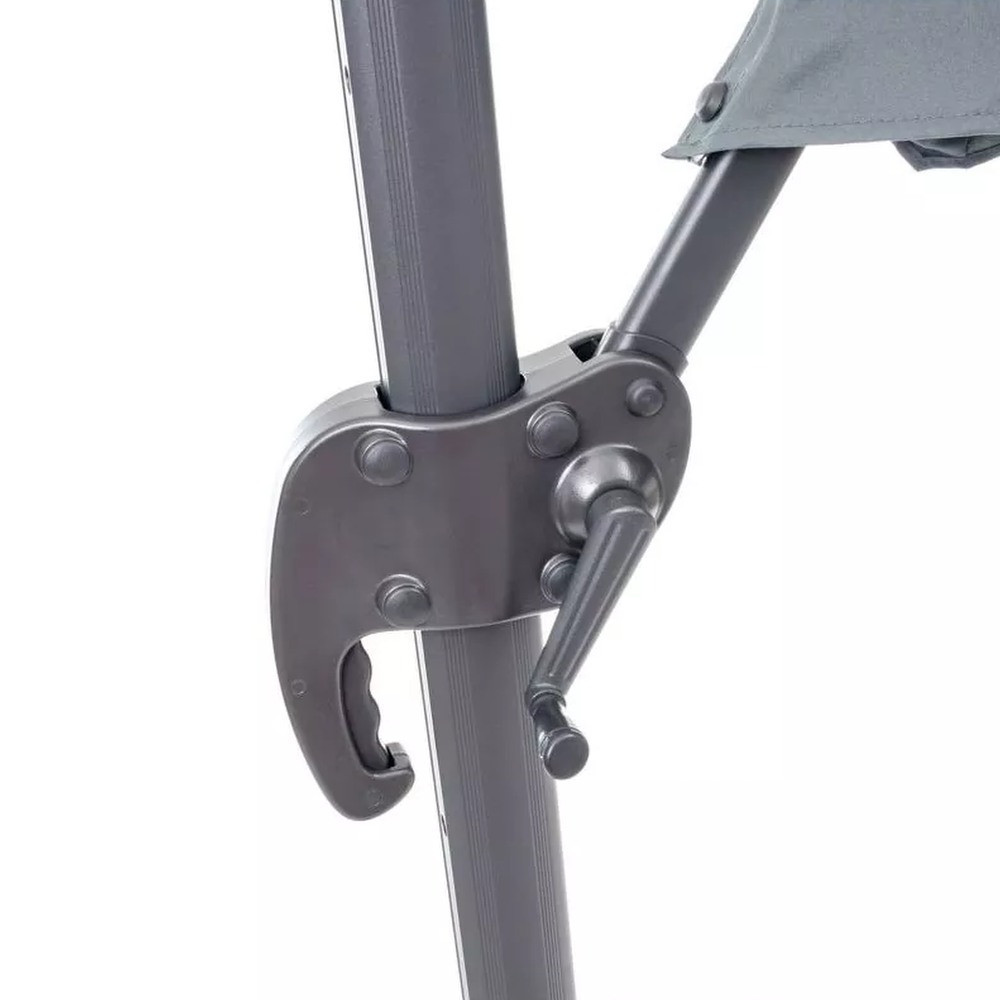 A kerti napernyő stabilitását jelentősen befolyásolja a kereszt talp. Az Ön kényelme érdekében egy rögzített fogantyú segítségével könnyen összecsukható. A napernyő előnye az alapban lévő forgó mechanizmus és a dőlésszög beállítás kombinációja. Ez lehetővé teszi az ernyő tetszőleges pozícionálását és az árnyékoló hely kiválasztását a napfény beesési szögének megfelelően.