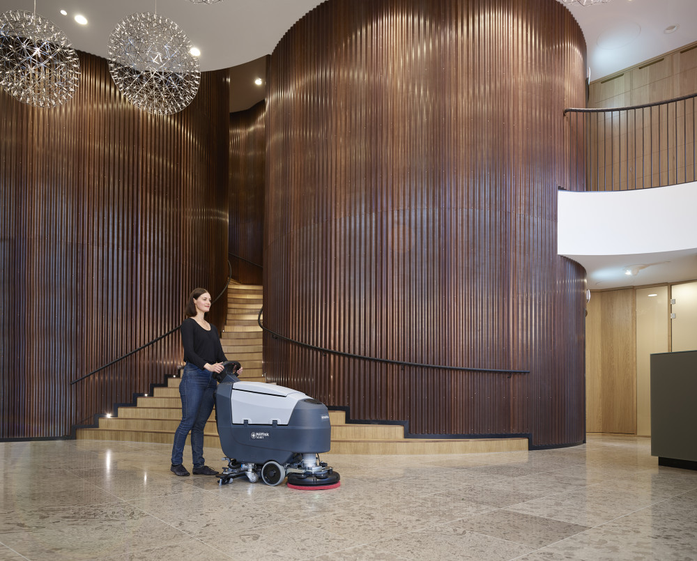 A jól bevált Nilfisk technológiájával tervezett és épített SC401 növeli a napi tisztítási hatékonyságot, pl. irodákban, boltokban, szállodákban, iskolákban, kórházakban, munkahelyeken, stb. A 43 cm-es, kefével vagy paddell ellátott padlótisztító biztosítja a magas szintű és állandó tisztítási hatékonyságot. Az ívelt felszívófej által biztosított kiemelkedő vízelvezetésnek köszönhetően a padló teljesen száraz marad - és hosszú ideig fenntartható a tisztaság: Akár 4 órányi folyamatos súrolás és szárítás érhető el teljesen feltöltött akkumulátorral, és akár 100 percnyi működés tartály újratöltés nélkül.