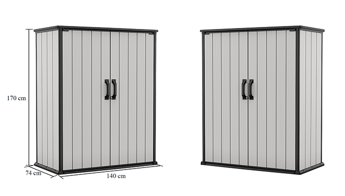 A Keter High Store kerti tároló dupla ajtaja reteszzárral rendelkezik. Elég, ha saját kezűleg vásárol egy lakatot, hogy megvédje a szekrényt a nemkívánatos felhasználóktól. A Kete High Store karbantartásmentes egész évben. A tisztításhoz vizet és enyhe tisztítószereket használhatsz.