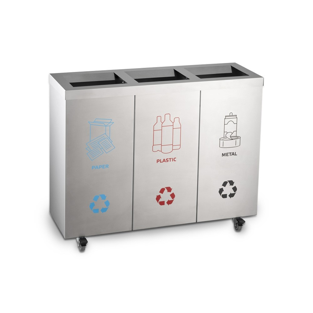 Rozsdamentes acél szelektív szemetes 3 részes 304-as acél