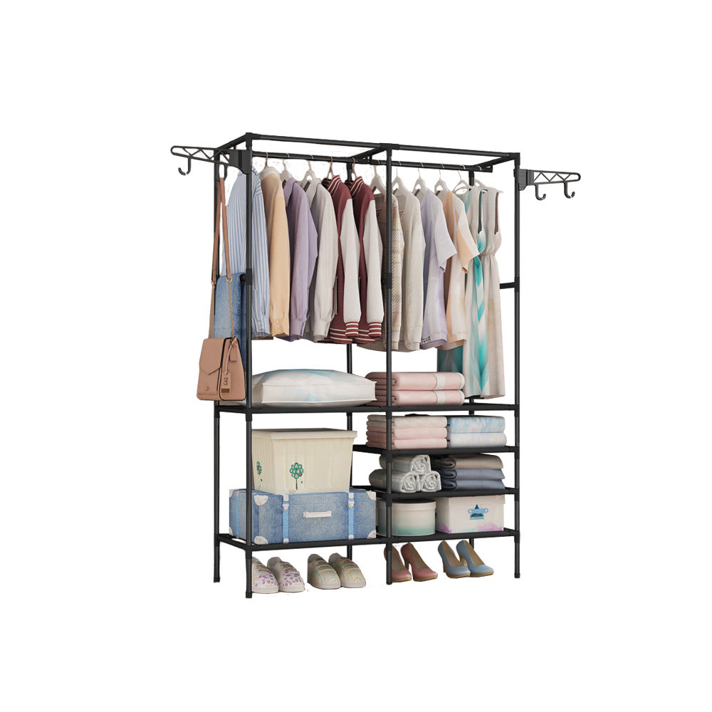 - Multifunkcionális kialakítás: Az állvány több polccal és egy akasztórúddal rendelkezik, amelyek lehetővé teszik különböző típusú ruhák, cipők és egyéb kiegészítők tárolását.