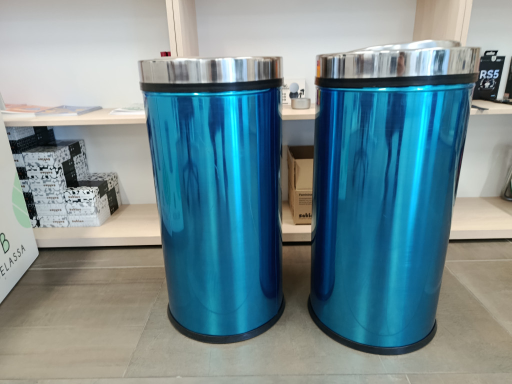 Sérült rozsdamentes Henger billenőfedeles szemetes 45L, fényes