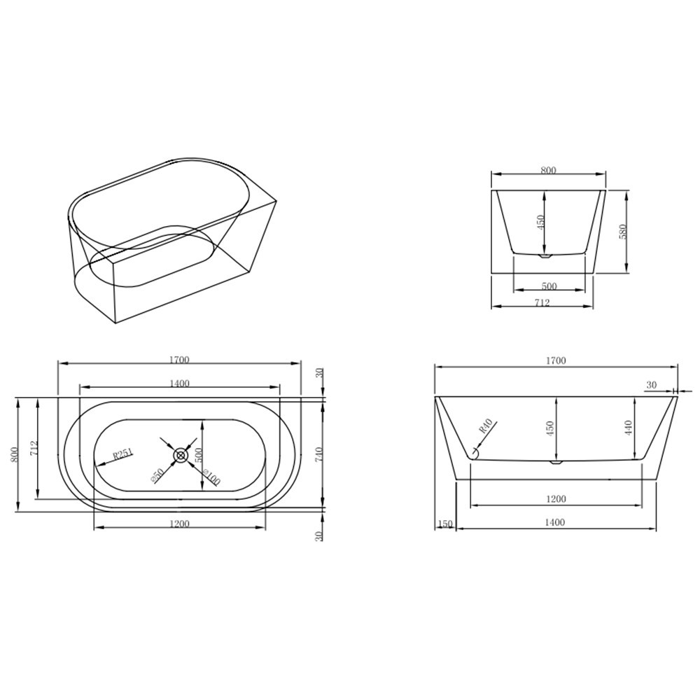 Still szabadon álló fürdőkád 170x80x58 cm