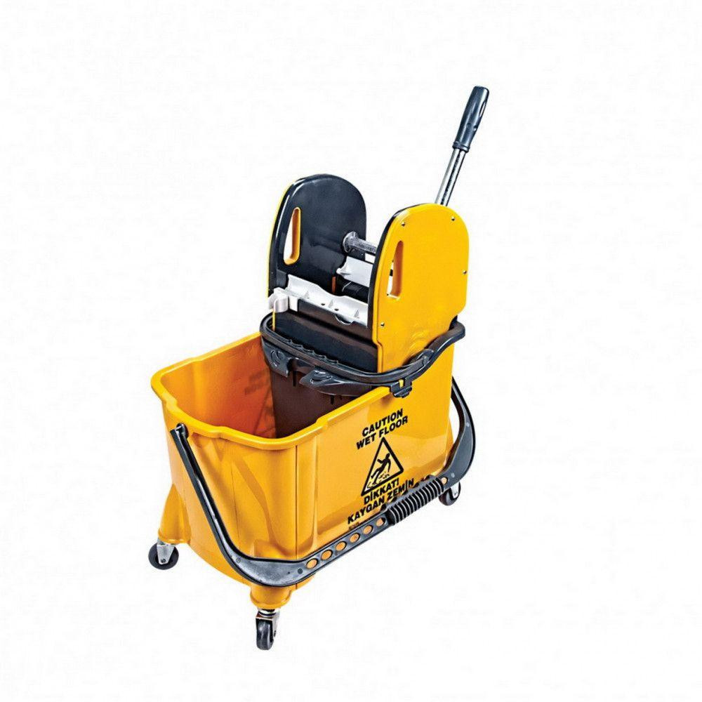 Takarítókocsi, műanyag vázas, sárga, 24 literes