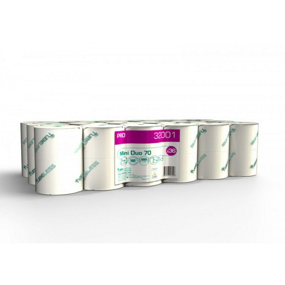 Tubeless Mini Duo toalettpapír 3 rétegű, fehér, 100% cellulóz, 71,5m, 36 tek/zsugor