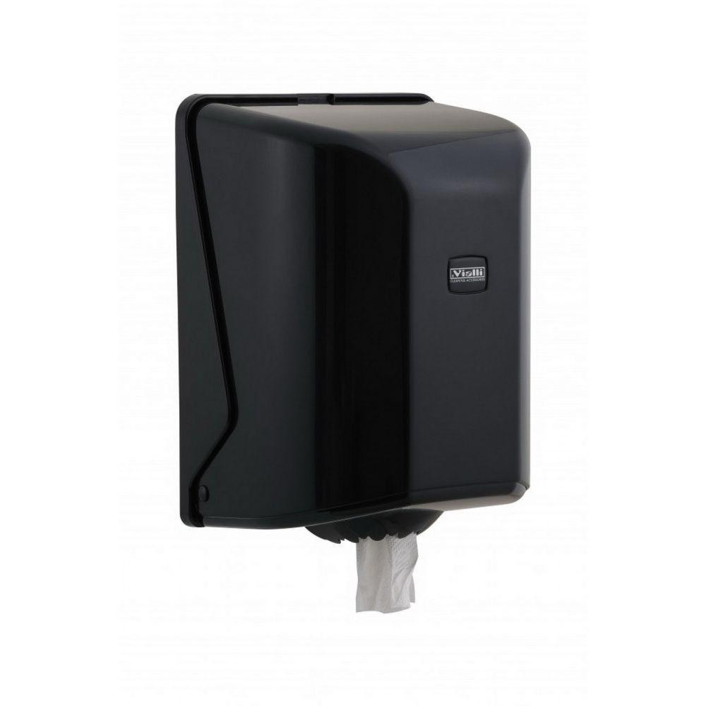 Vialli tekercses kéztörlő adagoló. Fekete színben az exklúzívabb megjelenésért. 19 cm átmérőjű belső mag adagolású papír kéztörlővel használható. Az adagoló nyílása tépőfogakkal van ellátva, így perforált és perforáció nélküli papírral is használható.