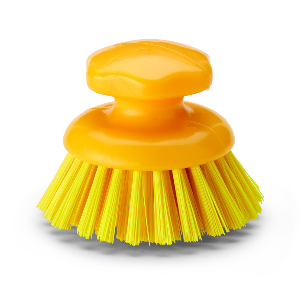 Igeax élelmiszeripari ergonómikus kézi súroló kefe kerek sárga, 0,75mm kemény sörtével