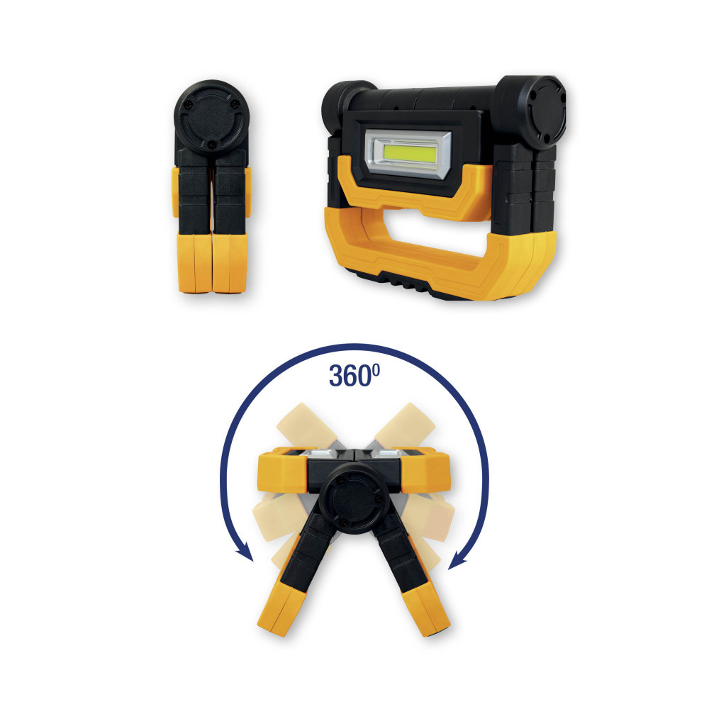 A 308-313 újratölthető LED-es reflektor 10 W összteljesítménnyel és 900 lm-es fényerővel rendelkezik. Kompakt kialakítás, 4 fokozatú világítás, 5000 mAh akkumulátor, powerbank funkció, összecsukható állvány. A szilárd műanyagból készült, robusztus ház, a termék sarkain gumivédőkkel, rendkívüli ellenállást biztosít a nehéz körülmények között.