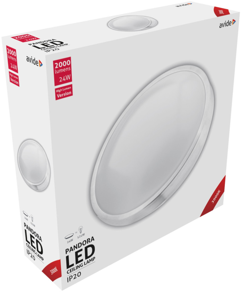 Avide LED Mennyezeti Lámpa Pandora (Alu) 24W 380*110mm WW 3000K