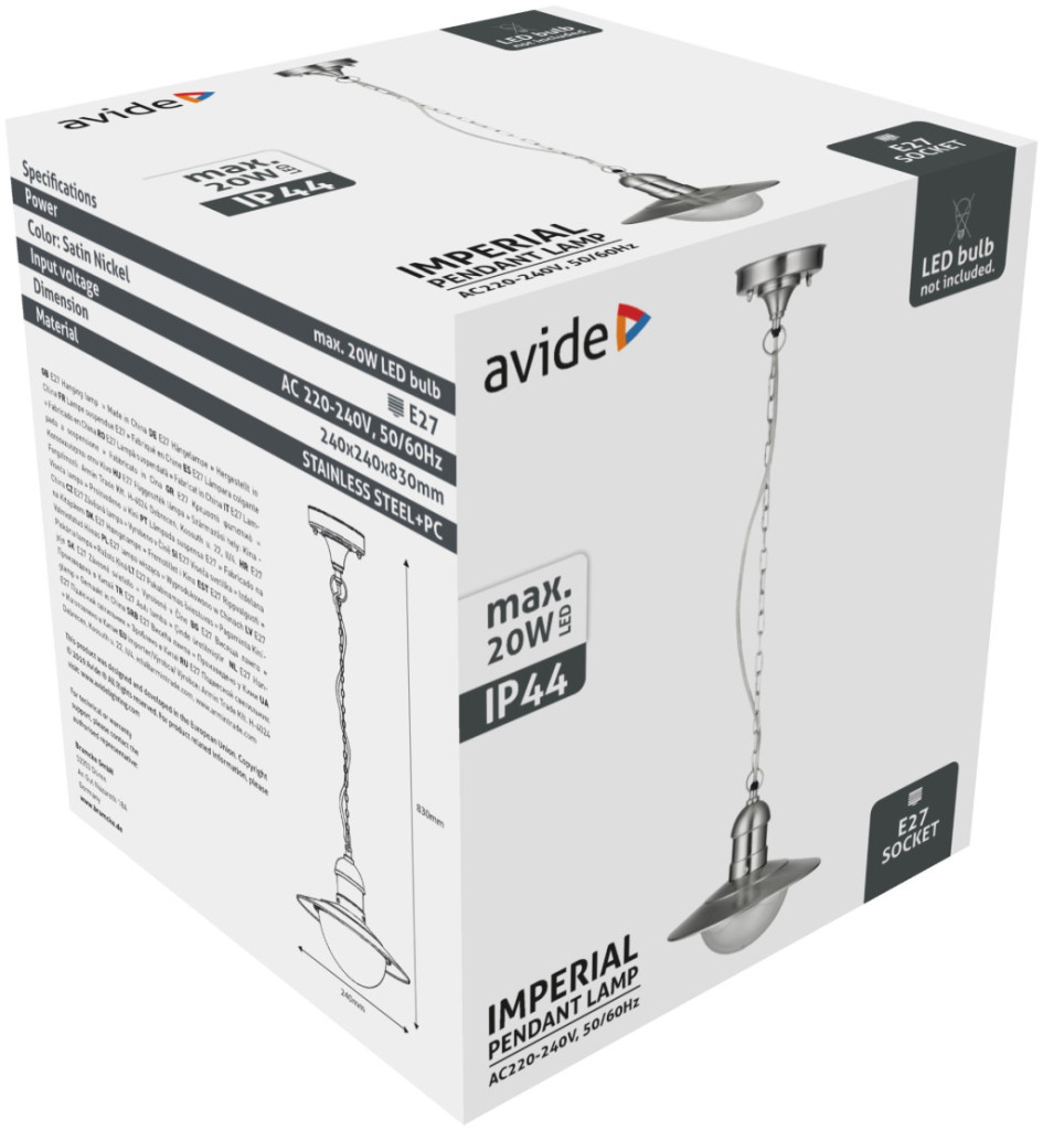 Avide kültéri függesztett lámpa Imperial 1xE27 IP44 Rozsdamentes acél