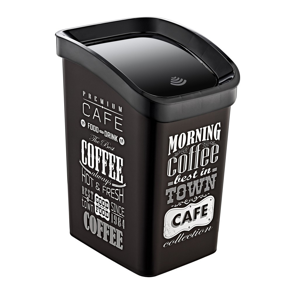 Műanyag Smart Click billenőfedeles szemetes, fekete/fekete mintás felirattal GOGO 23L