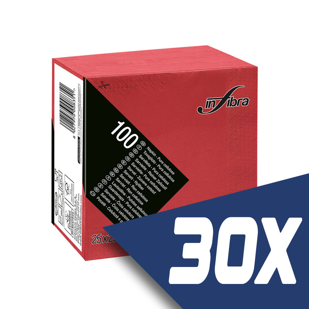 Infibra Szalvéta 25x25cm piros 2 réteg 100 lap/csomag (30 csomag)